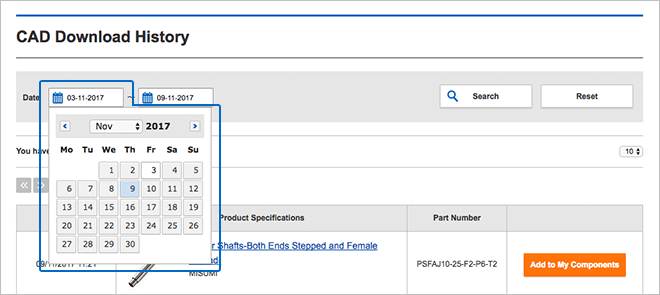 Click on “CAD Data Download History” on the right side panel (under your account details).