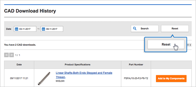 When you click on ''Reset'', the period will be cleared for re-selection.