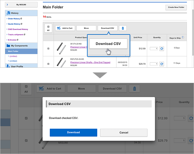 3. Click on ''Download'' to download the CSV file containing the list of the selected products.