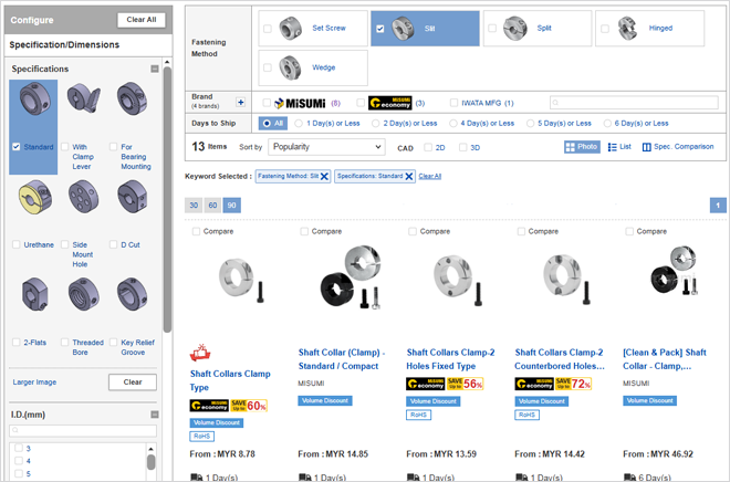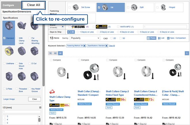 A new screen will appear to show similar products that meet your selections.