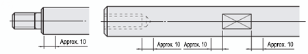 ![]() When KC + G ≥ L, keyway is configured as the drawing below. Ex.) When KC + G ≥ L, keyway is configured as the drawing below. Ex.) | [ ! ] KC, G = 1 mm increment [ ! ] b ≤ G ≤ 30, G ≤ L/3 [ ! ] L > 500: 2 ≤ KC ≤ L/3 L < 500: 2 ≤ KC ≤ 500 [ ! ] M × 2 < KC + F ·Only applicable to D = 12, 16, 20, 25 and 30. [ NG ]This alteration cannot be applied to any tapped part (M × 2.5 + 4). | SL-PSSFGW30-500-M8-N10-KC10-G10 | ||||||||||||||||||||||||||||||||||||||||||||||||||||||