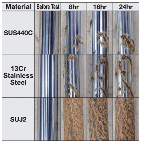 | - | SL-PSSFJW | SL-PSSFUW | SUS440C or 13Cr Stainless Steel | Hard Chrome Plating Plating Hardness: HV750 or more Plating Thickness: 5 µ or more | Degreasing | General environment | Anti-rust packing | General environment | |